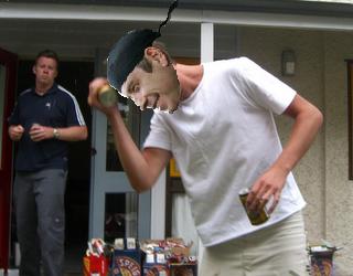 Half-an-hour later, we tailed the Look Who's Talking Now star to a suburb where he raided a random kegger, slammed a beer, and attempted to crush it on his forehead.